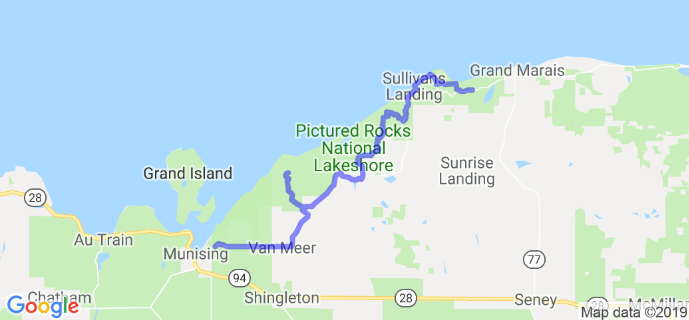 H58 is a county-designated route that runs from Munising to Deer Park across the northern portion of Alger and Luce Counties. Although a majority of the route passes through the woods, there are numerous picturesque vistas and one very brief section runs straight beside the lake.