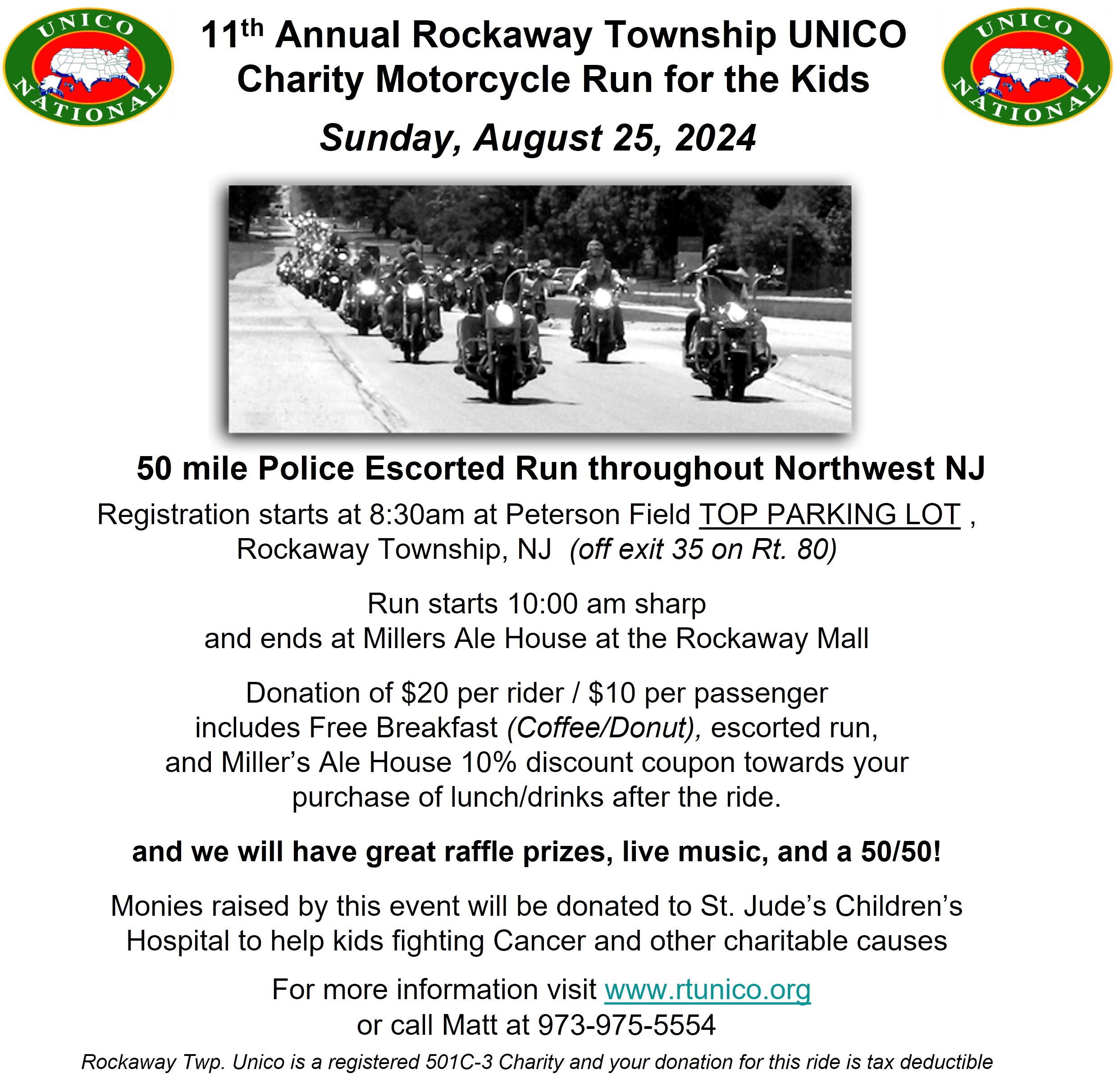 11Th Annual Rockaway Township Unico Charity Motorcycle Run For The Kids