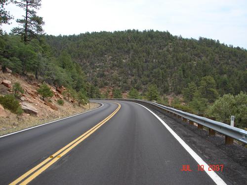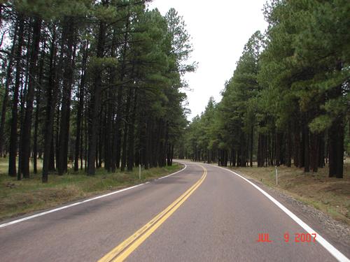 The route takes you along the side of Lake Mary then lots of driving through the tall pines and nice gentle curves until the stop sign at Highway 87. Turn south and again enjoy the cooler temp of the forest. You'll be traveling through Coconino National Forest. As you head south you will leave the forest and start to come down of the rim, careful coming down the mountain, sharp curves and slow traffic coming up the hill. Continue on through Pine and Strawberry on into Payson. Now either turn around and go back or continue on south to Phoenix.Drive Enjoyment