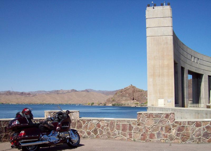 There are a couple of restaurants before the dam, and from the dam back to Parker are restaurants and gas. In Parker, there is a motorcycle dealer and regular full services of all types.