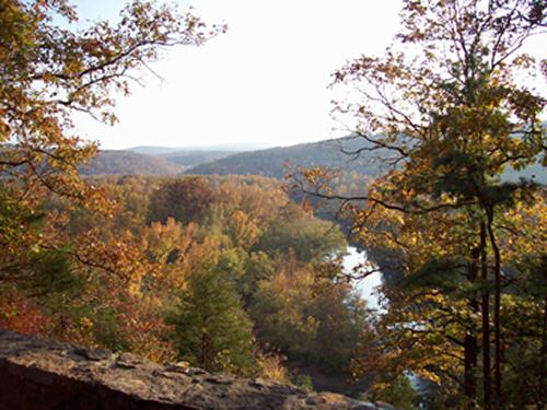 Photo contributed by Mike Whaley: "Stopped at a "scenic overlook" and shot this of the Mulberry River. Late April, '09. Great ride. Best have your motorcycle skills up to par! Killer 1/2 lb. cheeseburger at the Oark General Store. Don't order the double!"