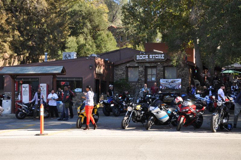 The only "roadside amenity" on this run is the Rock Store which is was an small town grocery-store/gas-station that has been turned into a throwback diner/hangout for bikers all around the area. Believe it or not but the building is made entirely out of volcanic rock - hence the name the rock store! On the weekends the bikes are all lined along the road and riders hangout telling stories and eating some decent diner/pub style food. Then groups head out, do the Mulholland Highway run and come back to tell more stories. Also celebrities stop by periodically and you can see their pictures all along the walls inside (Jay Leno, Arnold Schwarzenegger, etc) It is a MUST DO if you live in the area and call yourself a motorcycle rider!!
