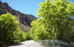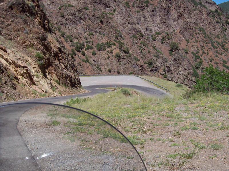 The road to the bottom of the canyon is about 5 miles long and drops about 1700'. The grade is 16% and has lots of slow, sharp, steep turns. The pavement has many road snakes and is about a 3 star. The ridge road, however, is a solid 5 stars and has longer sweeping turns and lots of pullouts.