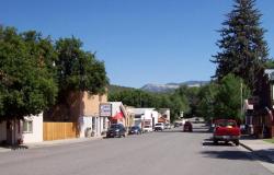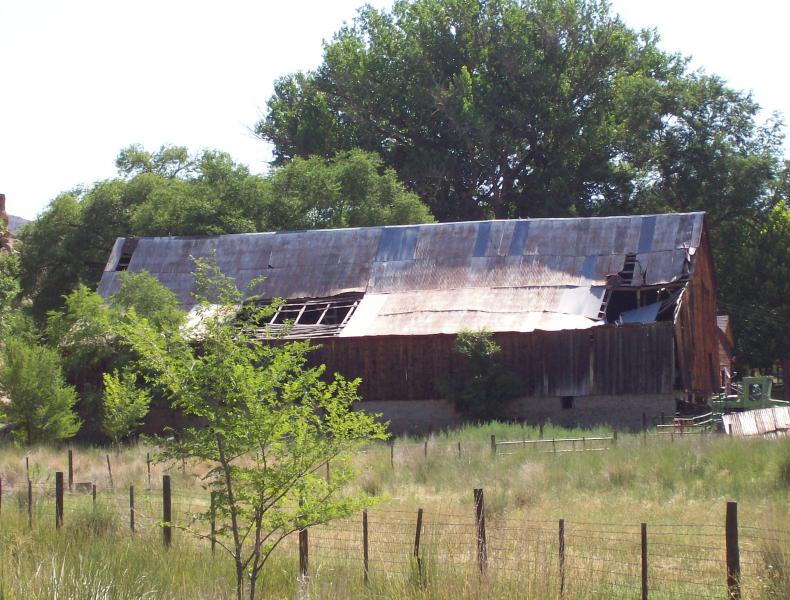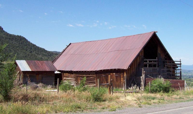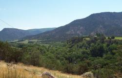 About half way along is Collbran. It was settled by farmers first in 1882 and has grown to a population now of about 710 people. It's the largest town in the valley. You'll climb above the town to a ridge with a wonderful view of the valley below and the ranch land along the wide ridge area to the north. After another 5 miles, you'll go along a shelf road where the narrowing canyon comes up to meet you and brings along some 100' spruce trees growing along the creek as it comes out of Vega Reservoir.
