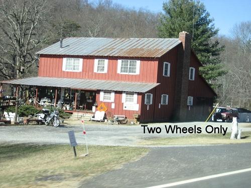 This route begins and ends in downtown Dahlonega. Dahlonega is a perfect place to begin and get a cup of coffee or hot cocoa before heading out. There is a motorcycle stop in Suches, on the left, called Two Wheels Only (great place to stop). Many bikers gather here to drain the pipes, bs, and maybe get a bite to eat and fuel up on caffeine. Just past TWO, is a gas station on the right (corner of GA-180/Wolfpen Gap Road) called Dale's. Very biker friendly! After Dale's, all you'll have are picture opportunities and National Park stops until you get to LaPrade's on Lake Burton. There is a great restaurant around back called Lakeside Grill. Stop for lunch & drain the pipes again before finishing the route. Next, when you come to Sautee, there are some nice shops to stop at and look around. At Ga-75, if you turn RT, you'll come in the E side of Helen which is a neat little town. Once you get back to Dahlonega, there are plenty of places to get a bite to eat if you skipped Lakeside Grill.Biker friendly "Two Wheels Only"