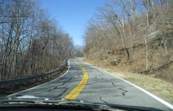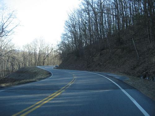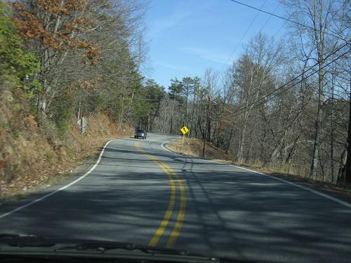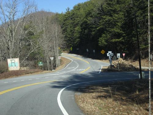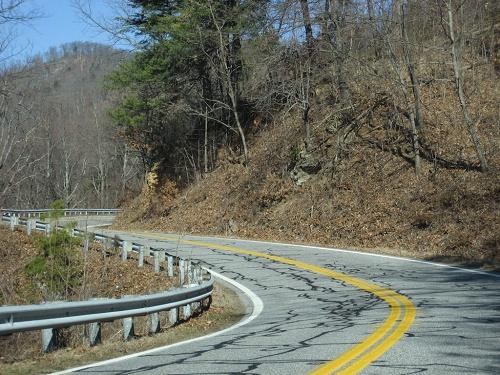 Your driving in the mountains here so be prepared for tons of slopes, turns, and a few switchbacks. Traffic exists, but doesn't usually overwhelm you. There are a lot of places along the way that you won't see anyone else (other than bikes) on the road. This is a 'ride like you ride' route. Don't try and test the curves at higher speeds than your comfortable with. Some curves get sharper half way through. Ride safe and enjoys the scenery/foliage. If you want to ride fast, find a track. Most roads are State roads, so they are kept up pretty well.Rock pile - stay left!