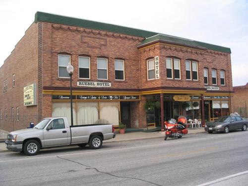 Smooth road surface, gentle sweeping corners and mostly flat. Some interesting elevation changes here and there. Low traffic volume after Grafton.The Famous Ruebel Hotel in Grafton, IL