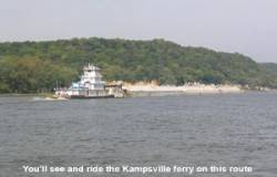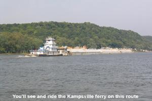 From Alton, IL, take Illinois Rte 100 for over 130 miles north until it meets up with Rt 136 4 miles west of Havana, IL. First 16 miles along Mississippi River has amazing views of bluffs along north side of river. At Grafton route leaves Mississippi and follows Illinois river north through small towns and river countryside ending at US Rte 136. Optional loop; 13 miles north of Pere-Marquette State Park take Eldred Rd north to town of Eldred then west on IL-108 to Kampsville Ferry. Cross river on free ferry and resume north on Rte 100.Scenery