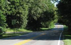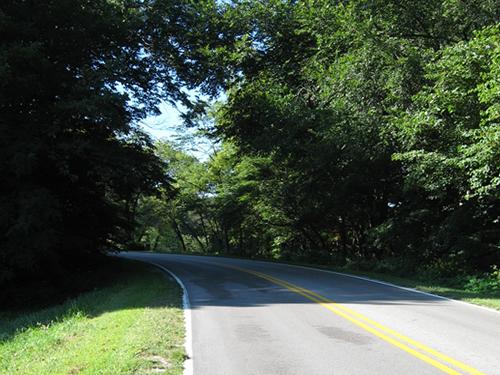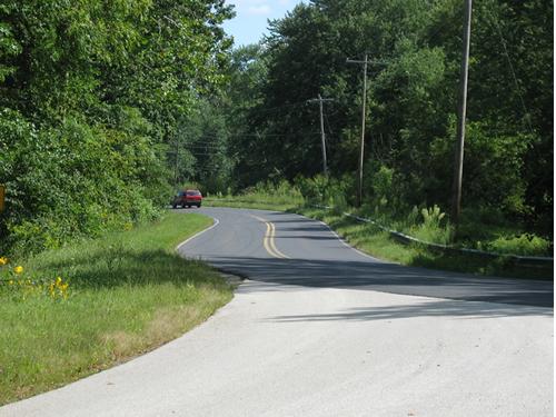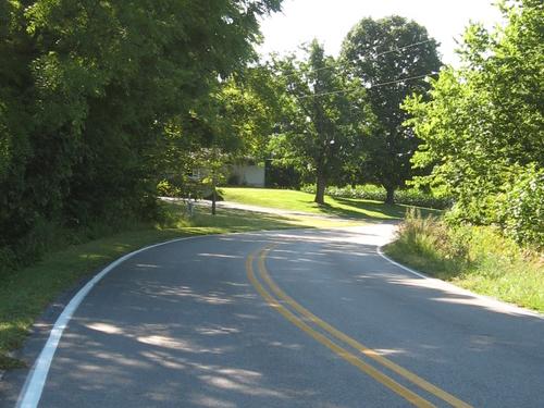 The roads are in pretty good shape despite being country roads and you'll enjoy many twisty sections with hills too. In addition to the road surface being in good condition, the fun qualities fair pretty well too. Some of this route is in town, so with that being said the country roads are a lot of fun. I have taken this route many times. There are a lot of nice sweepers with and without hills. There are a few sharp corners, but not many. You have to be careful around many of the sweepers though. The roads have a lot of houses on them that are both tucked back in the woods, and right up on the road. So you have to watch for cars that sneak up over the hills.