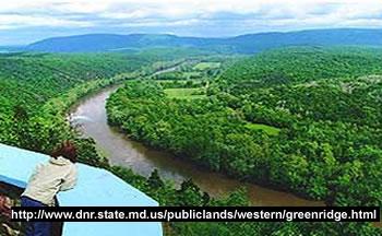The scenery on this route is outstanding because of its path through the Allegheny Mountains in the Maryland panhandle. Much of the route takes place near rivers, creaks and in valleys and you will be able to see some waterfalls. Past the town of Cumberland the route takes you up against some 1,000-foot bluffs.