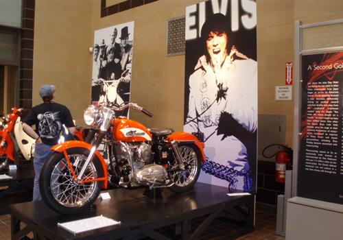 We undertook the ride while we were at the Americade. Fun as the event was, it didn't provide a whole bunch of eye candy, unless you are into trikes, and side cars. We heard the Auto Museum in Saratoga Springs had a vintage motorcycle show going on, so off we went. The ride was worth the trip, though. The town is lovely! The Museum is located outside of the center of the town, in part of the old Springs resort area. The ride itself wanders along a river and Lake sides. A very pretty and quiet ride.Elvis's Harley K at the Saratogo Auto Museum