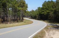 Good curves, great surface and little traffic makes this a great ride in the flatlands. While not near the twisties of our friends to the west, this offers a beginners guide to what awaits on those greater roads. Some blind curves, and just a couple blind hills. One of the best road sefaces in northeastern N.C. Smooth and for the most part, gravel free. Second half of northern section of road is paved with cheaper materials, but still suffices for ride quality...