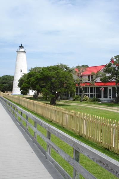 Along NC 12 you are on the Outer Banks of North Carolina. My son and I rode along with the Atlantic Ocean on one side, and the Intercoastal Waterway on the other! Lots of sand dunes, and people along the route flying kites because of the wind. The historical lighthouses along this route are Bodie Island, Hatteras, and Ocracoke. Hatteras and Ocracoke are beautiful places to visit.