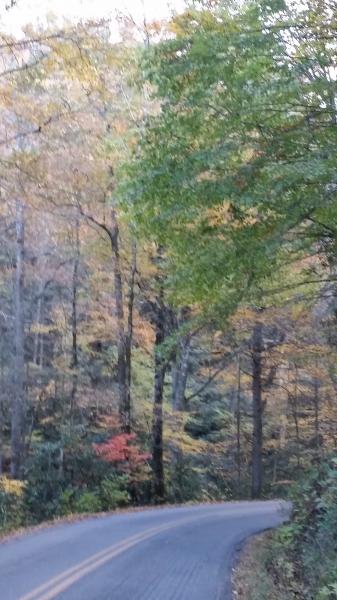 Hard to keep your eyes on the road at times! The west end starts you going up a gorge tracing the stream with some waterfalls mixed in. Once you reach the peak (the AP trail crosses around here) there is a large lake at the top. Nice winding road around it then the fun begins; lots of tight curves and more elevation changes. Keep your eyes on the road: not much in guard rails protecting you from some rather large drop-offs! Eventually you "wind down" on some less technical roads and at a little gas station/convenience shop. IIRC, this station has REAL gas (no ethanol).