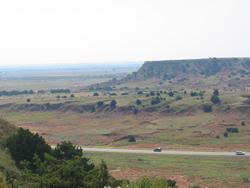 You are driving along US 412 and there is pretty much nothing to look at and then all of sudden you enter about a 25 miles stretch of desert looking plateaus. Once you get on U.S. 412 in Orienta, right in front of you will be the Gloss Mountains. The Gloss Mountains got that name because of selenite content and sparkle of gypsum that makes them appear as if they are covered with a layer of glass. The view is nice there from the road. As you top the first big hill be ready for the park/picnic area on your right. When you stop at the park/picnic area, be sure and climb to the top of the plateau at the parking area there. There is a makeshift stairway and the view from up there is simply GREAT! The plateau is about a mile long. My son and I walked all the way the other end. We loved it!!! Also at the park is an information kiosk that covers the history and features of this highly unique patch of Oklahoma territory. During this ride, you almost feel like you are in the bottom of an ancient lake or ocean ... be sure and take a camera.Motorcycle Road Quality:2