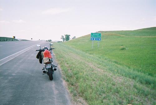 90 East and West is currently under construction for repaving. It is a fast road with a normal speed limit of 75 miles an hour. The ride was really smooth, and not what I expected with the hard winters they have that far north. The road is pretty flat, with a strong wind constantly blowing knocking you around a good bit. There is a scenic overlook just past Murdo that was pretty good for pictures taking. A view of the open rolling plains heading toward Sturgis on I-90.