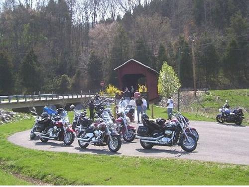 Not many stops along the route, but not a problem. There are enough gas and break stops along the route, especially near the beginning and end of the route. Best to always gas up before leaving.Bible Covered Bridge Historic Site. Route 349 is on the other side of the bridge. You turn on the new bridge to get to the parking area.