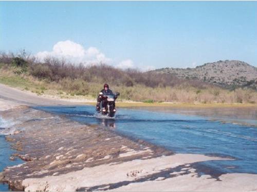 Leave Del Rio on US 90W heading northwest out of town past Amistad Dam to Comstock, Texas. If you have a small tank (2.5-3 gals) you might want to gas up in Comstock. Heading north on Ranch Road 163 there is a minimum of scenery. You will cross over the Devils River bridge, (a good photo op) and then have to ford the Devil's River about five more times as it crosses directly over the road. Ranch Road 163 will fork (take the right fork onto Ranch road 189) which ends at US 277. Then take that back south (right turn to Del Rio).