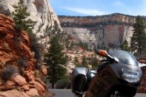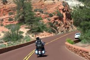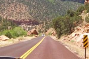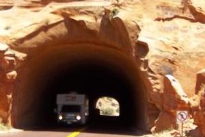 Just outside of La Verkin, Highway 9 ascends a fault abduction and drops into a valley surrounded by mesas with Zion Canyon's spires in the background. The Virgin River winds with the lanes on the south side. Stunning scenery and great history including the film location of "Butch Cassidy and the Sundance Kid." Drop into Rockville and see a slice of preserved western Americana, round a bend past an impeccable apple orchard, up and over a rise and Springdale fills all the senses. Once in Zion National Park, vision is overloaded with a geological and natural variety found only here. On the off season riders can take the canyon road into its terminus at one of the most picturesque points of America. Continue on 9 and mount the switchbacks to the mile tunnel carved into the cliffs of Zion. The road winds through landscape of Kaibab limestone with wind and water formations. From the east entrance to Mt. Carmel Junction, 9 meanders through high desert terrain and forest.Photo contributed by visitor in Jun 09 - "Picture entering the second (and longest) tunnel."