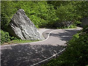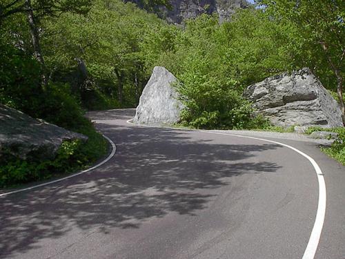 Photo contributed by a visitor in Jun 09 - "This is one of three sharp curves near the summit on the south side of the mountain. The two curves above this one have reduced visibility of oncoming traffic"