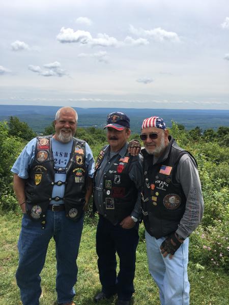 Submitted by Charles Peterson on Mon, 07/04/2016 - 07:26 Photo Post #274 American Legion Riders @ summit of Big Pocono State Park overlooking Camelback Mt. Waterpark.